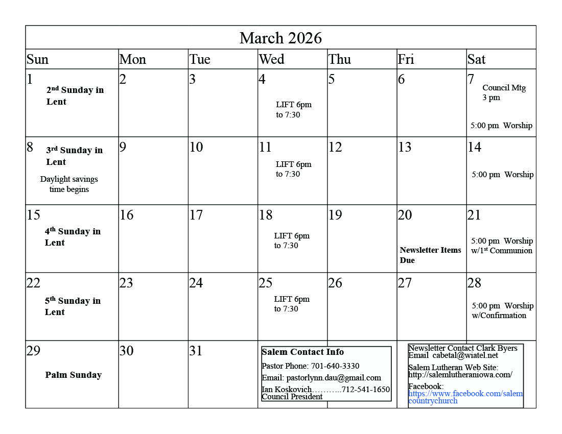 March Calendar